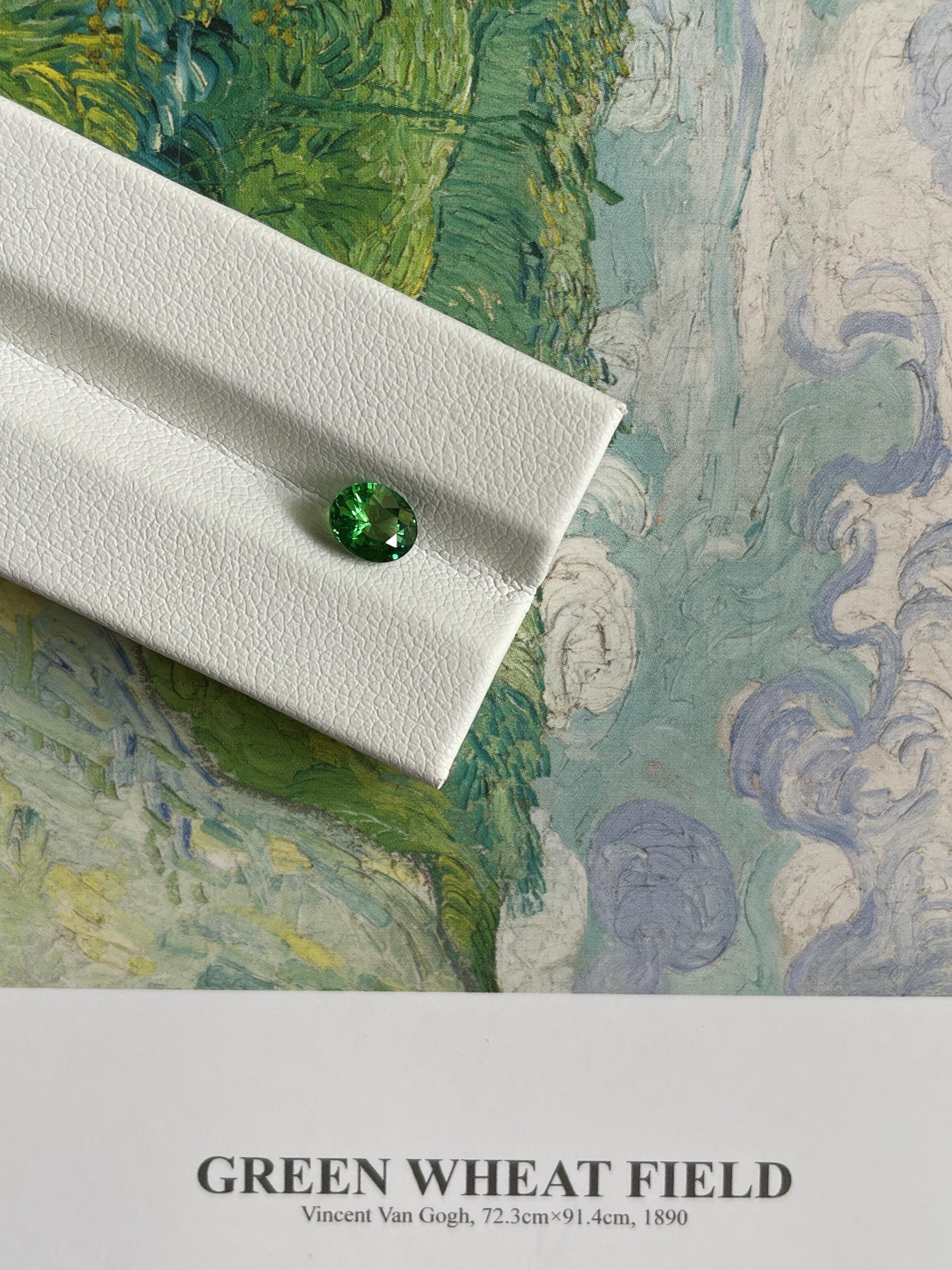 Discover this stunning beauty of the 1.02ct Natural Oval Faceted Tsavorite Garnet, featuring a vivid green hue that captivates the eye.