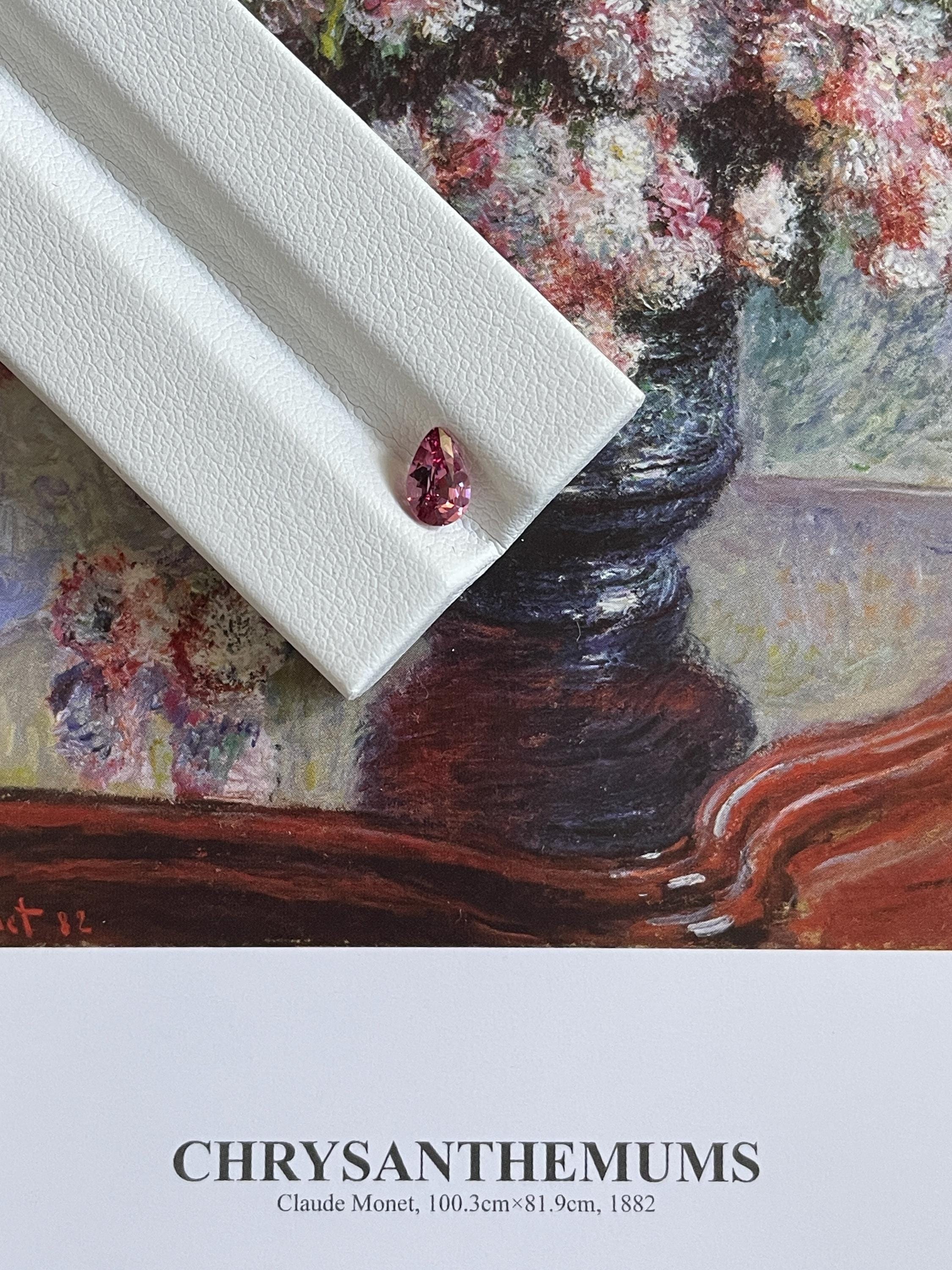 This stunning 0.67ct Natural Pear Shape Faceted Malaya Garnet though is small but it's mesmerising. This exquisite gemstone radiates elegance and charm, making it the perfect for any jewellery project. Its cutting enhances its brilliance, and is captivating especially under direct sunlight. This beautiful garnet is ideal for rings, mismatched earrings, or pendants.