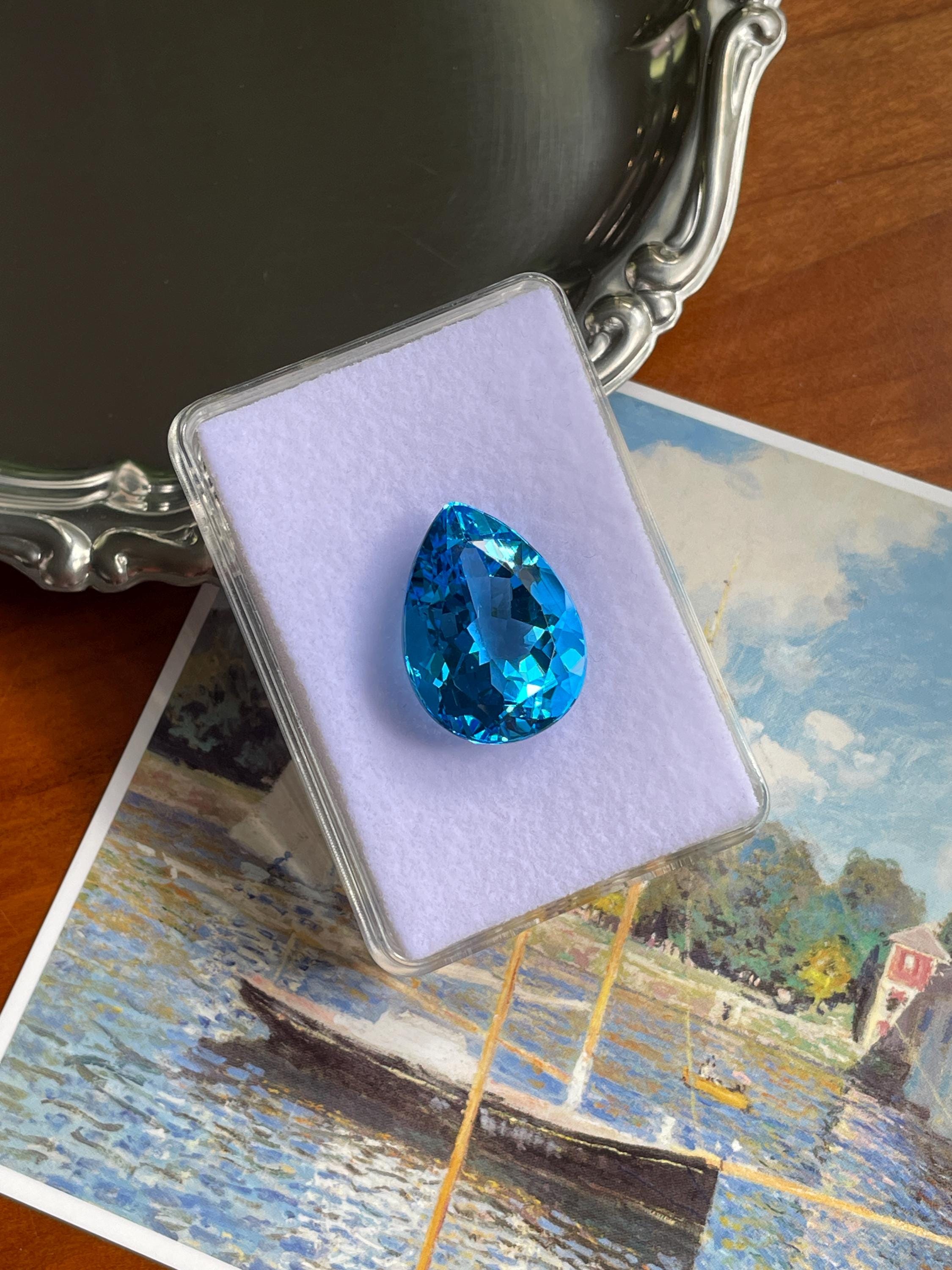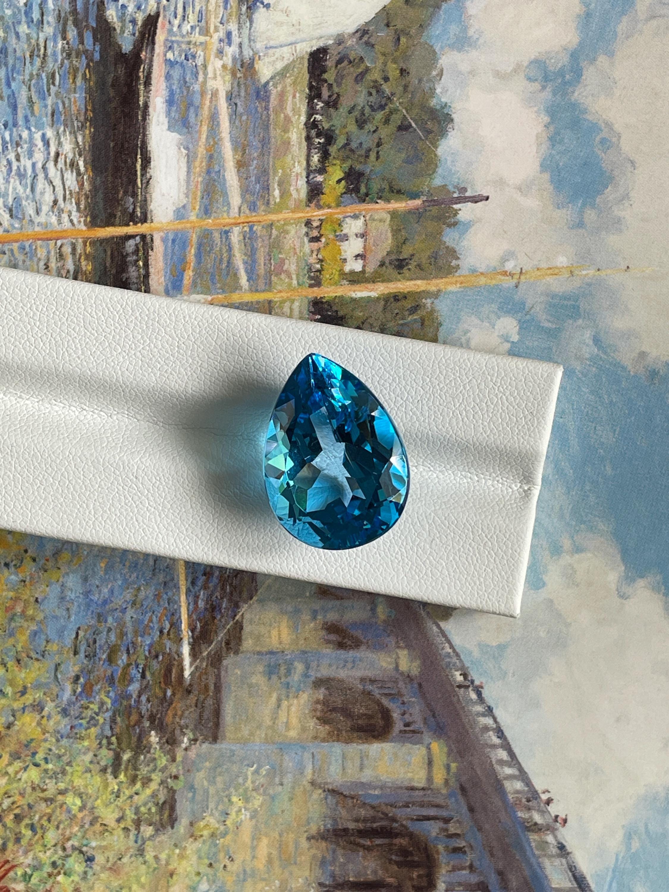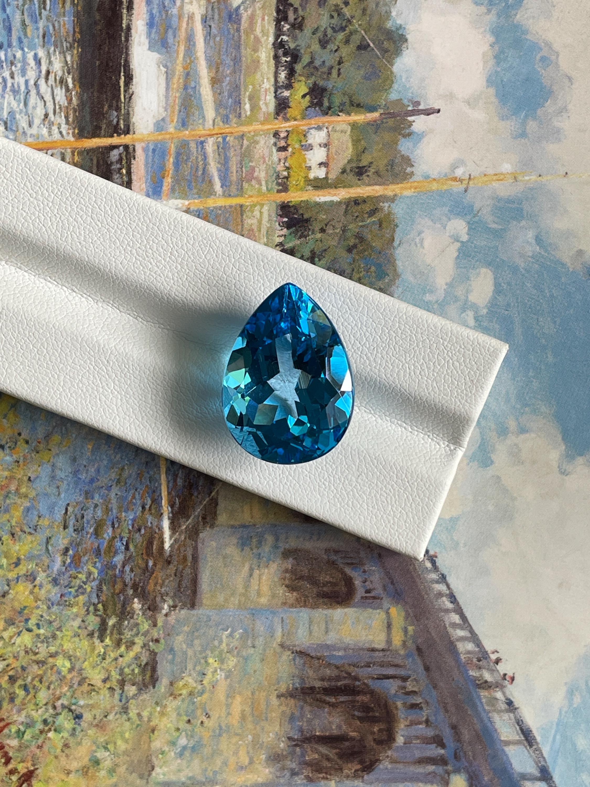 This stunning 27.20ct Faceted Pear Shape Swiss Blue Topaz has a vibrant hue, makes it the perfect centerpiece for any piece of jewellery. Whether for designing a bespoke cocktail ring or a dazzling pendant, this topaz is sure to impress. Perfect for a unique creation.