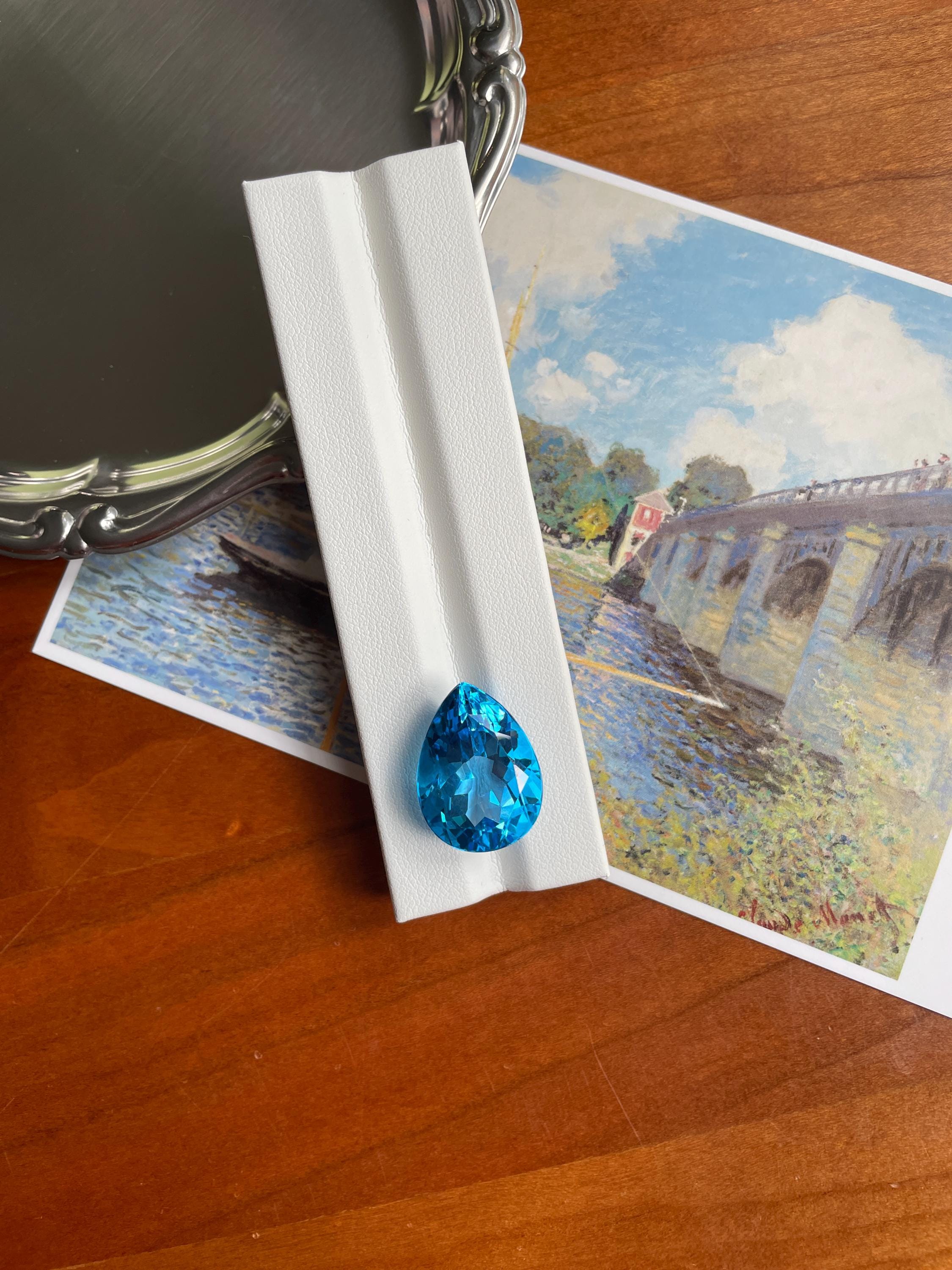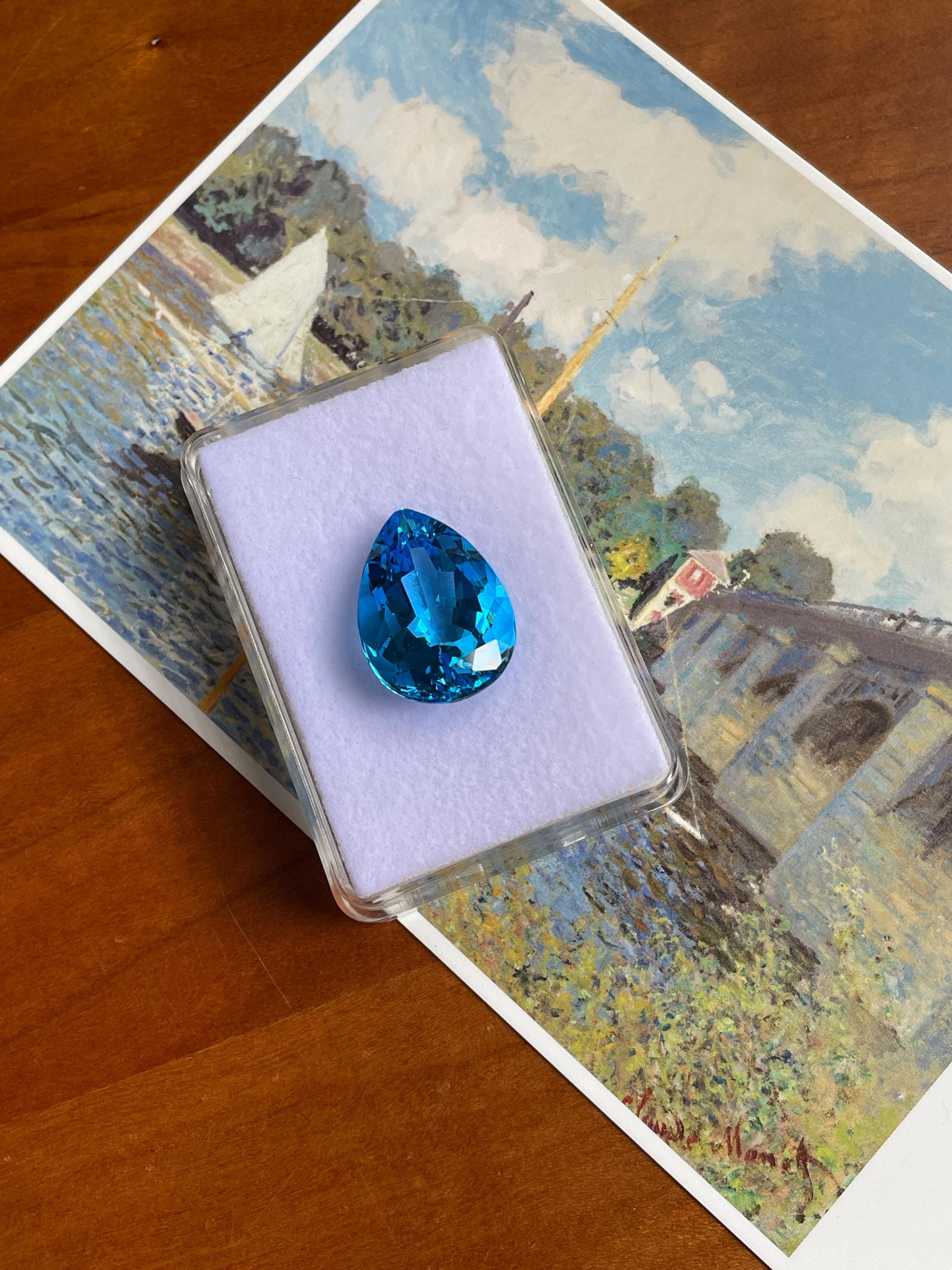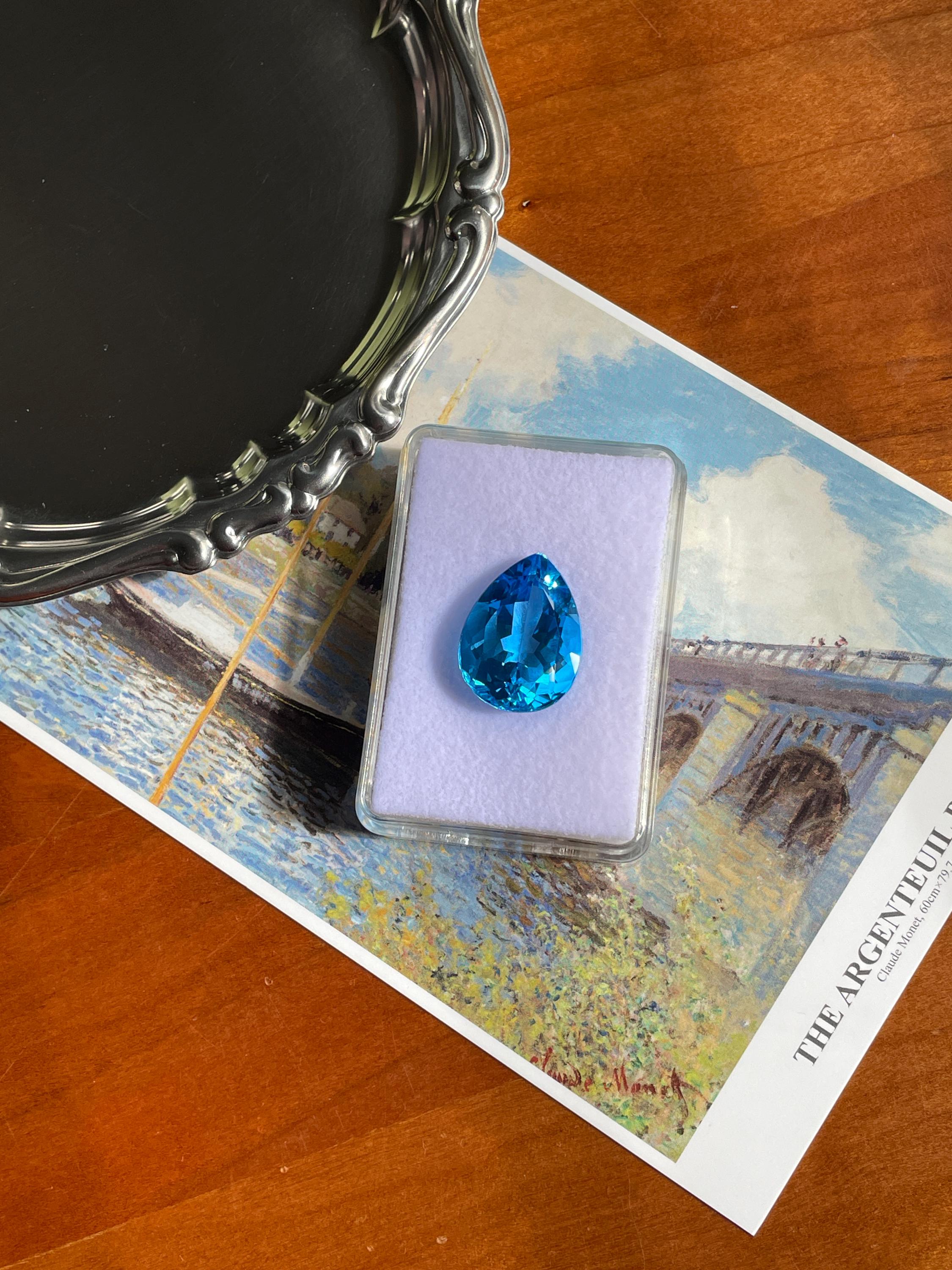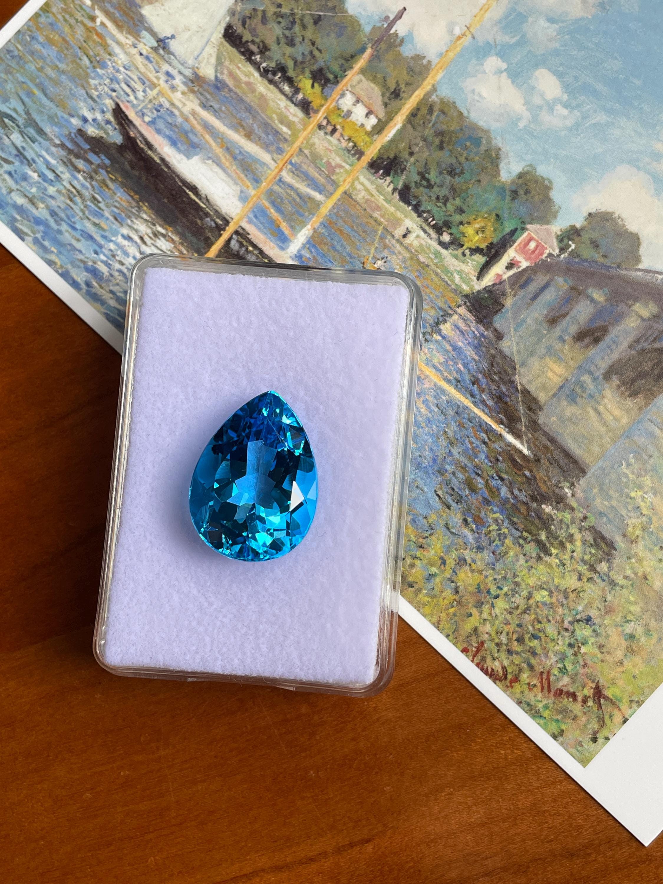 This stunning 27.20ct Faceted Pear Shape Swiss Blue Topaz has a vibrant hue, makes it the perfect centerpiece for any piece of jewellery. Whether for designing a bespoke cocktail ring or a dazzling pendant, this topaz is sure to impress. Perfect for a unique creation.