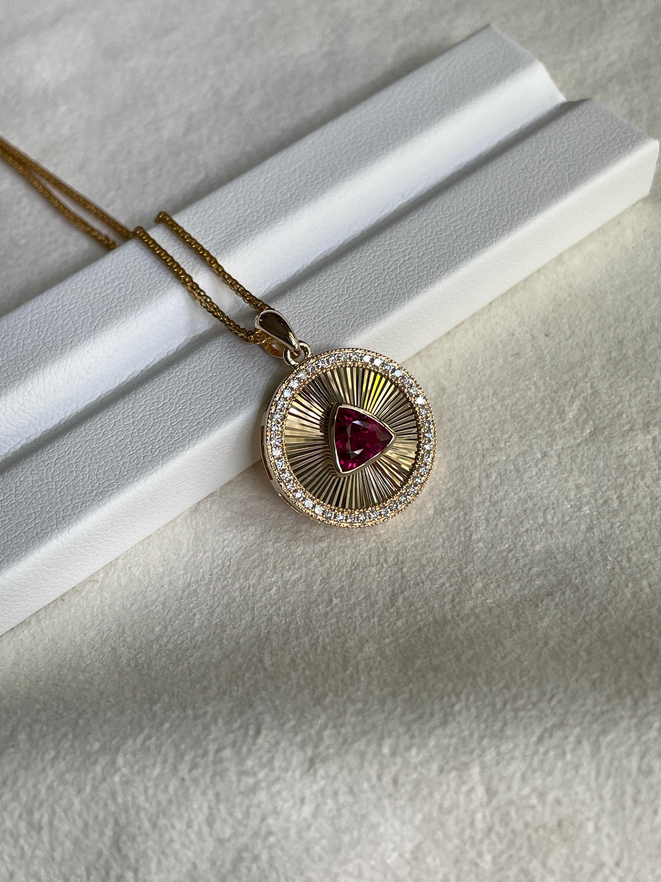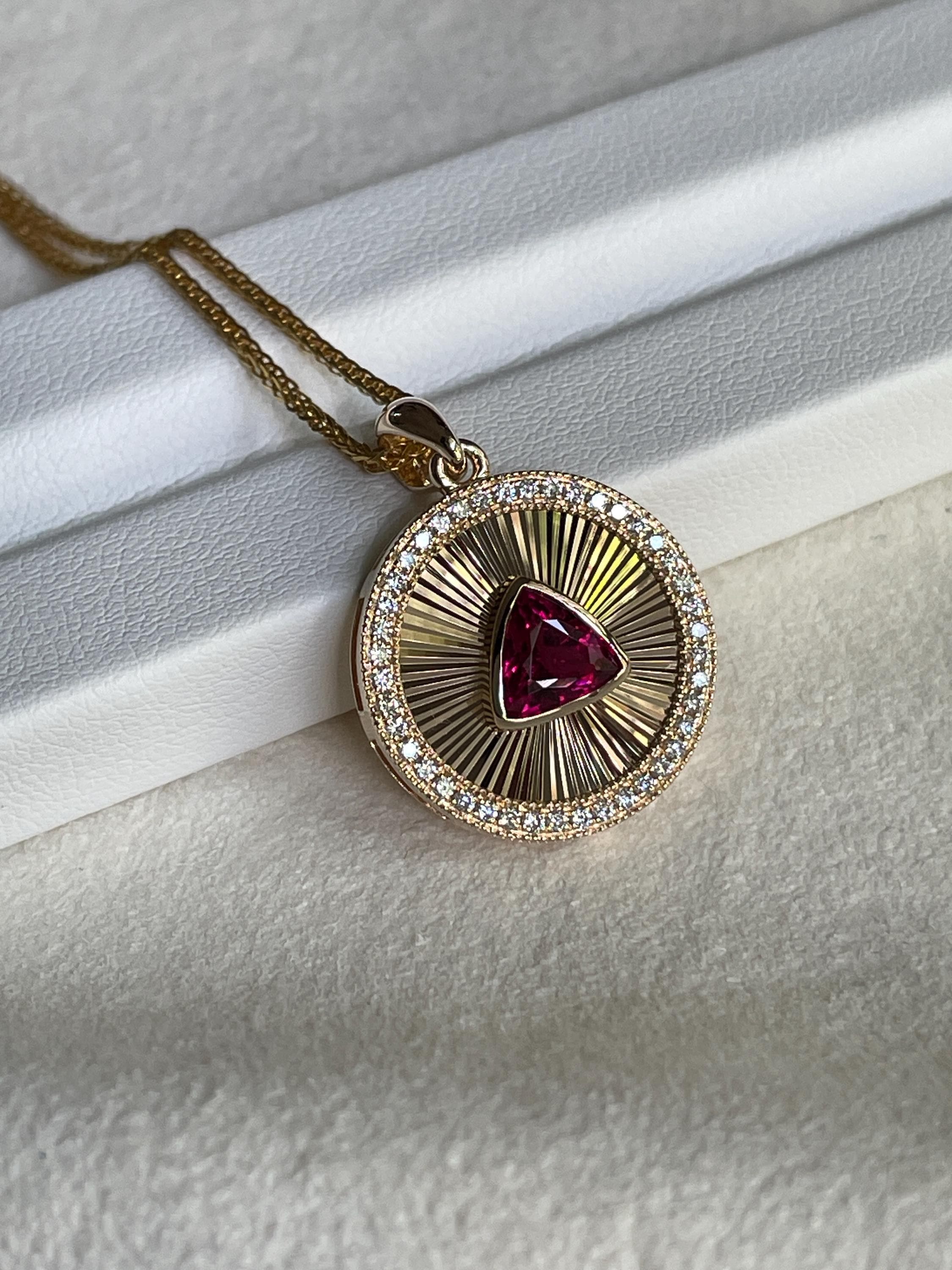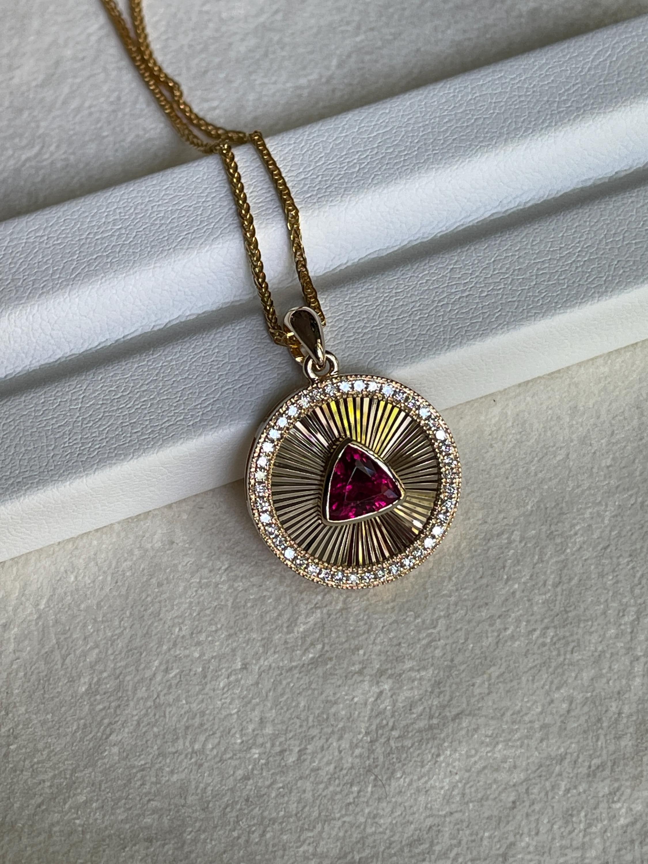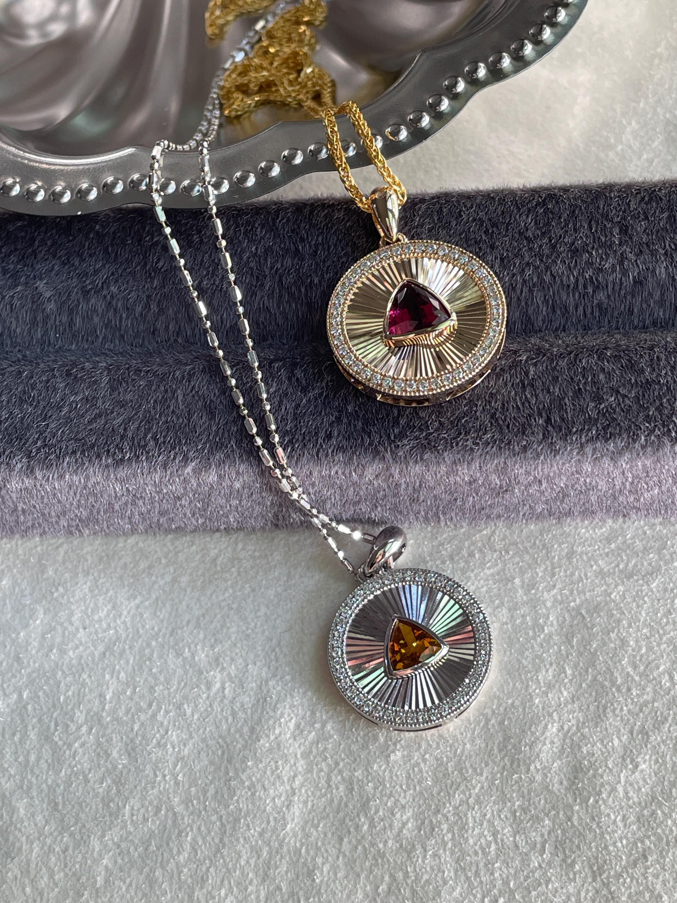 Medallion Pendant, featuring a stunning Rubellite set in luxurious 14k Gold or a vibrant Yellow Tourmaline in 925 Sterling Silver with 18k white gold plated.
