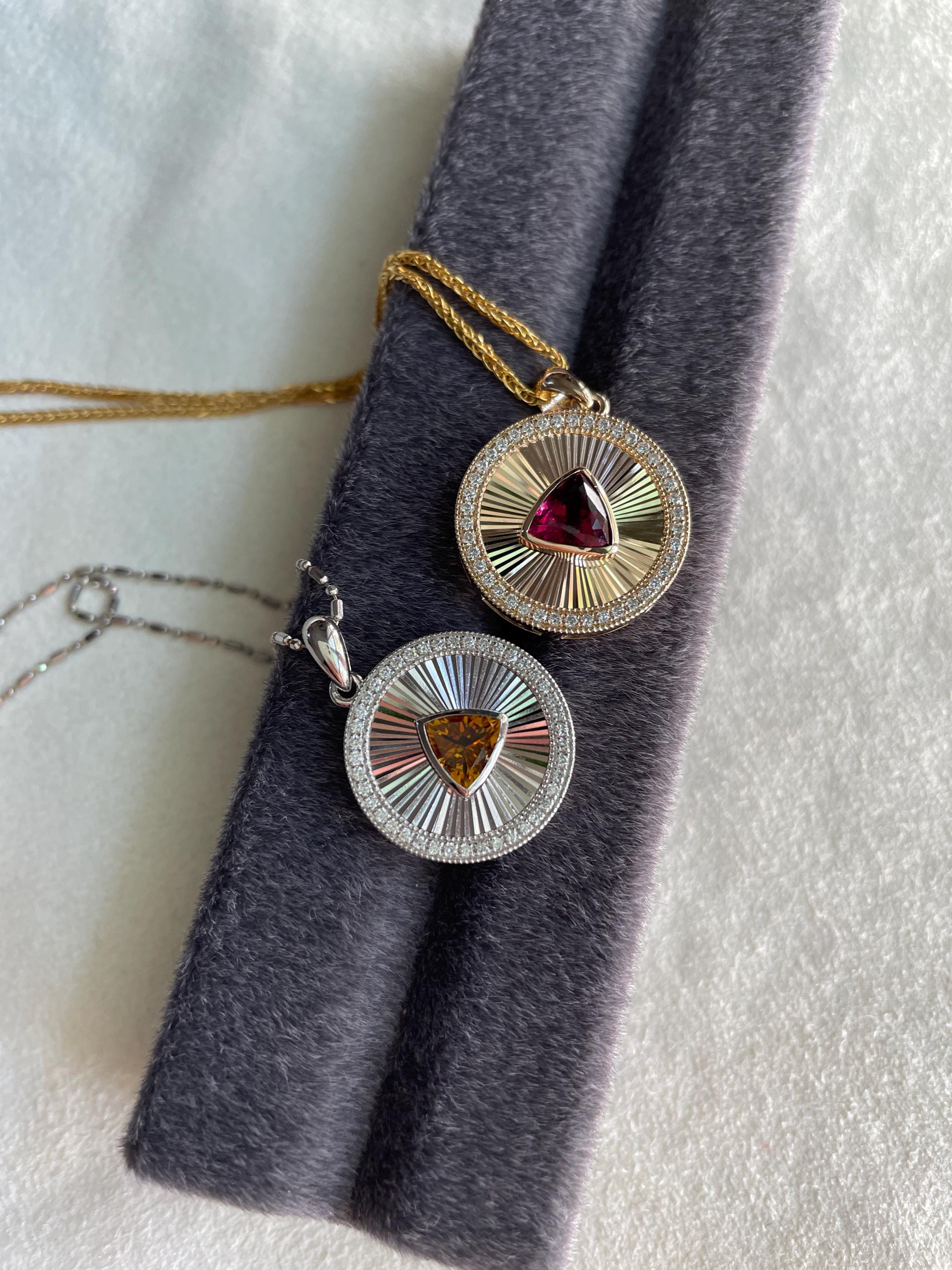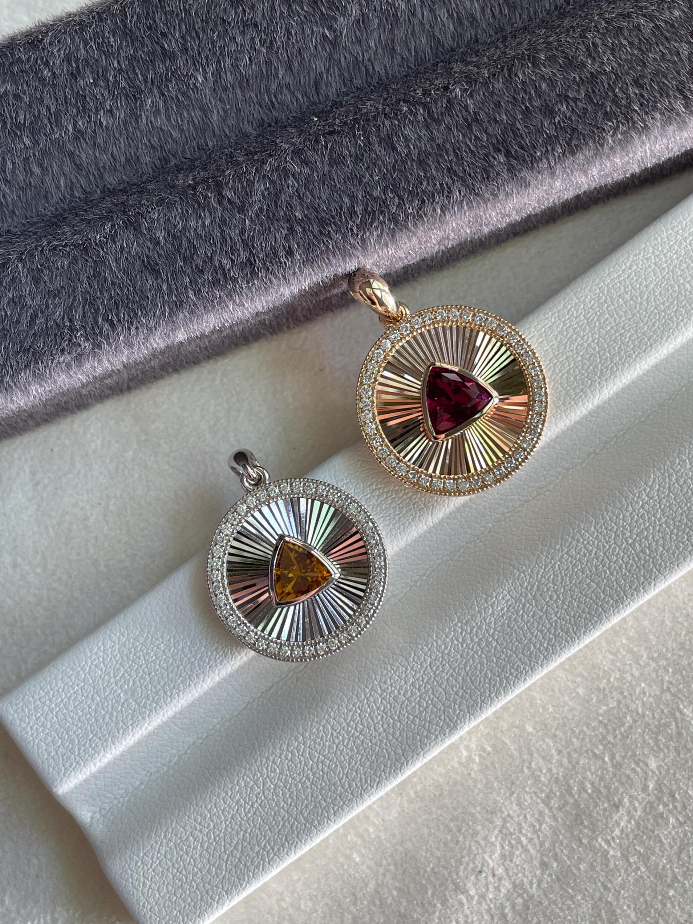 14k Gold Medallion Pendant with Rubellite or 925 Sterling Silver with Yellow Tourmaline 🩷💛
