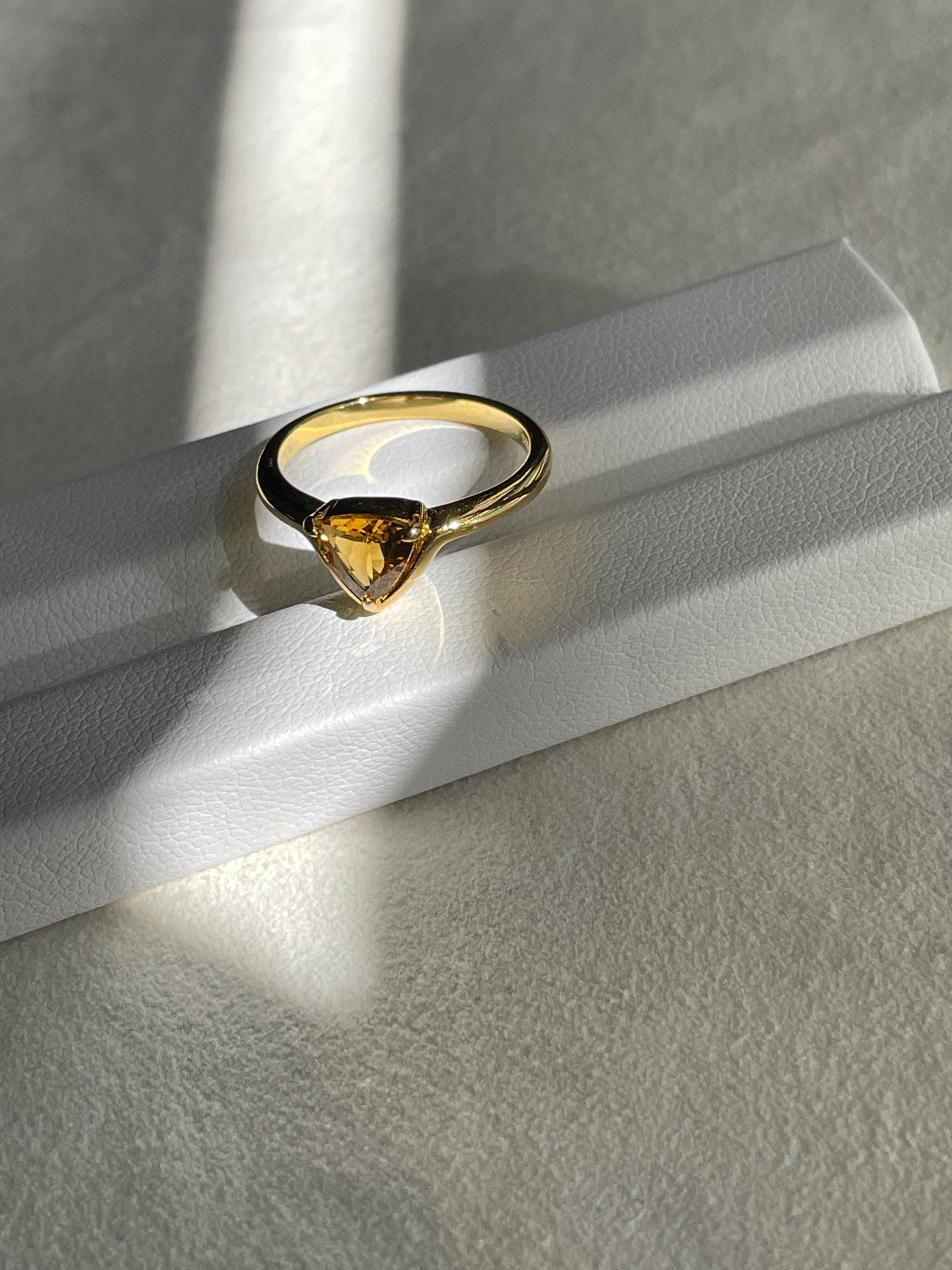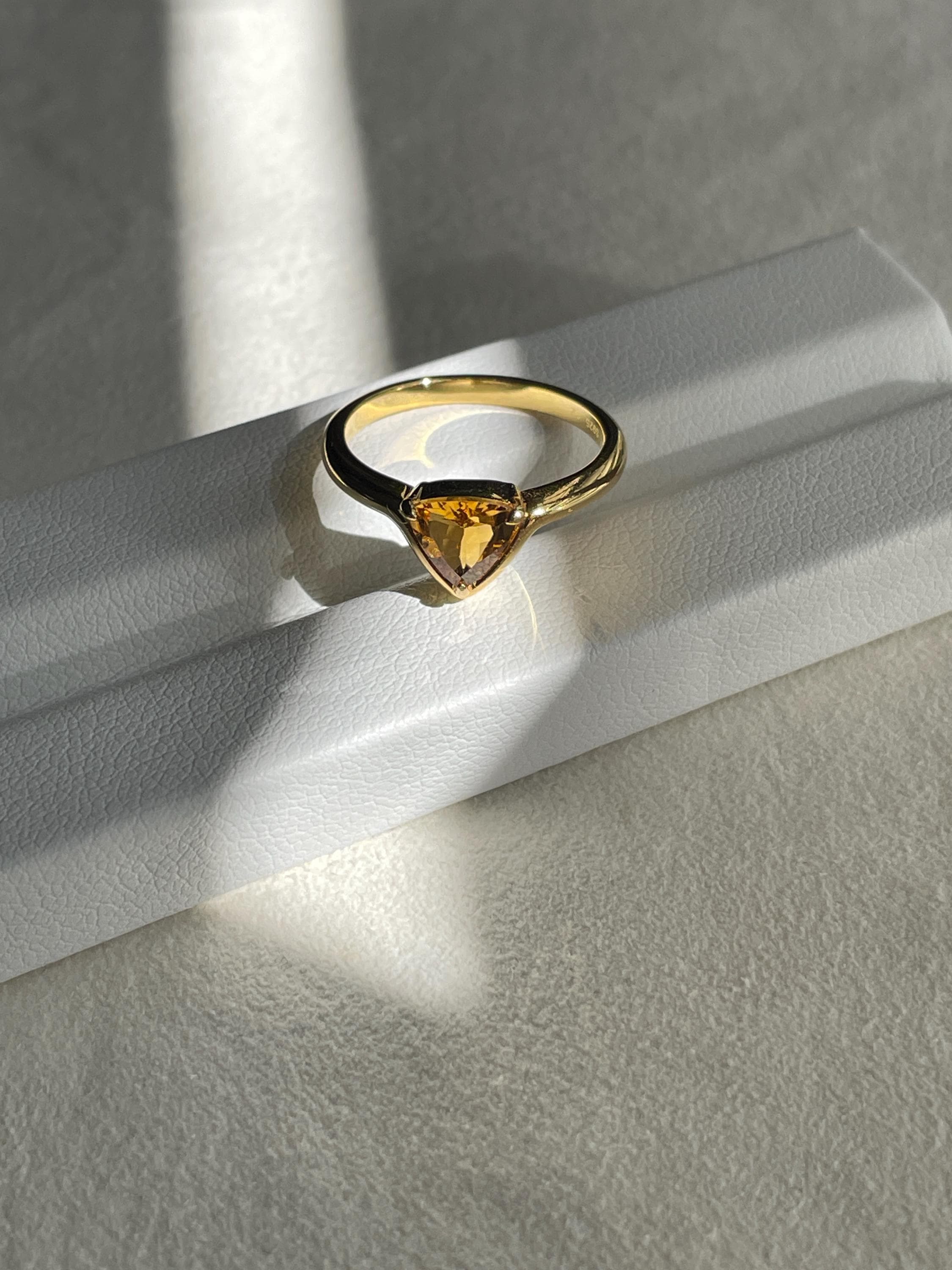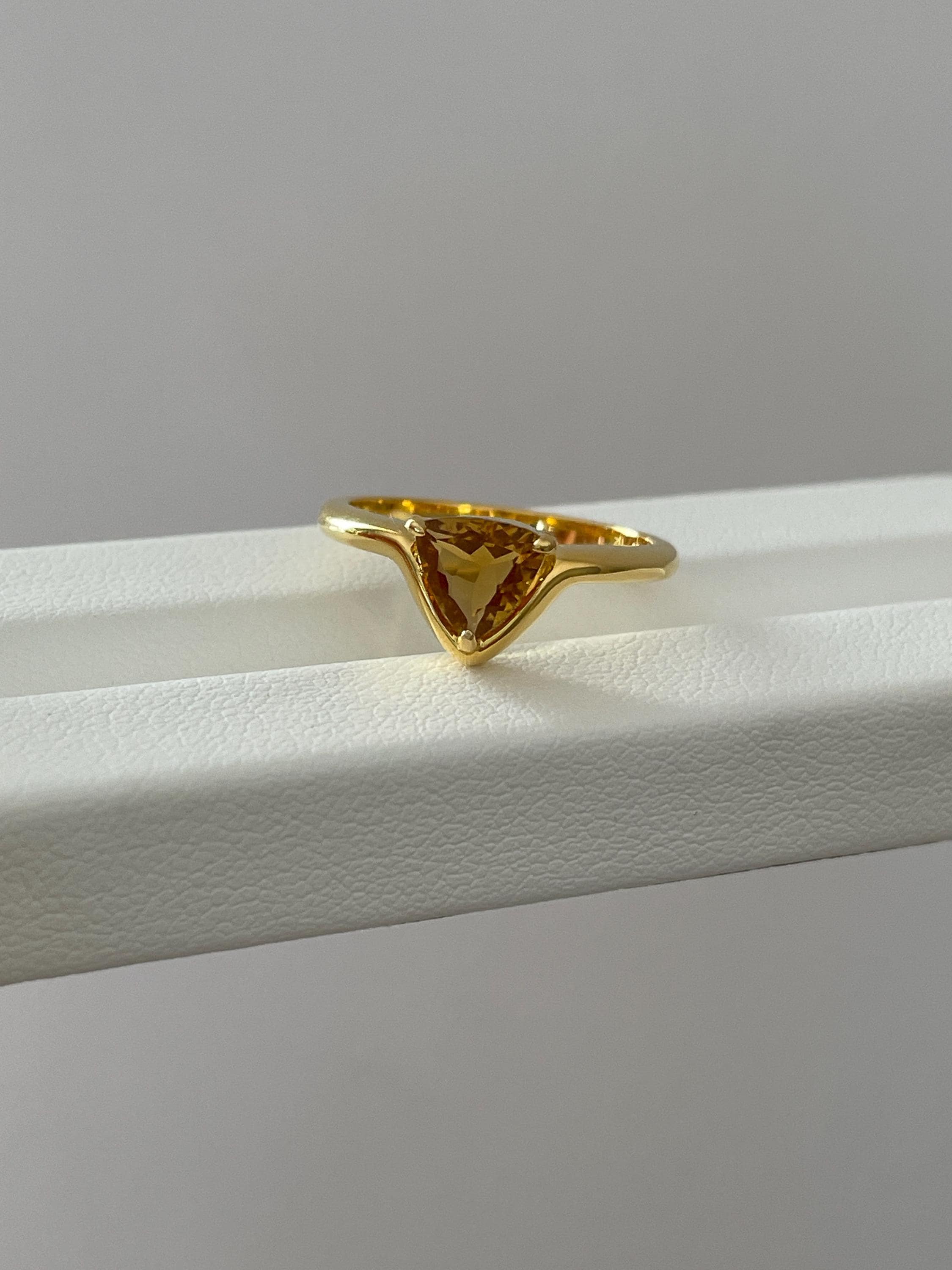 Triangle Yellow tourmaline ring in 925 sterling silver with 18k gold plated