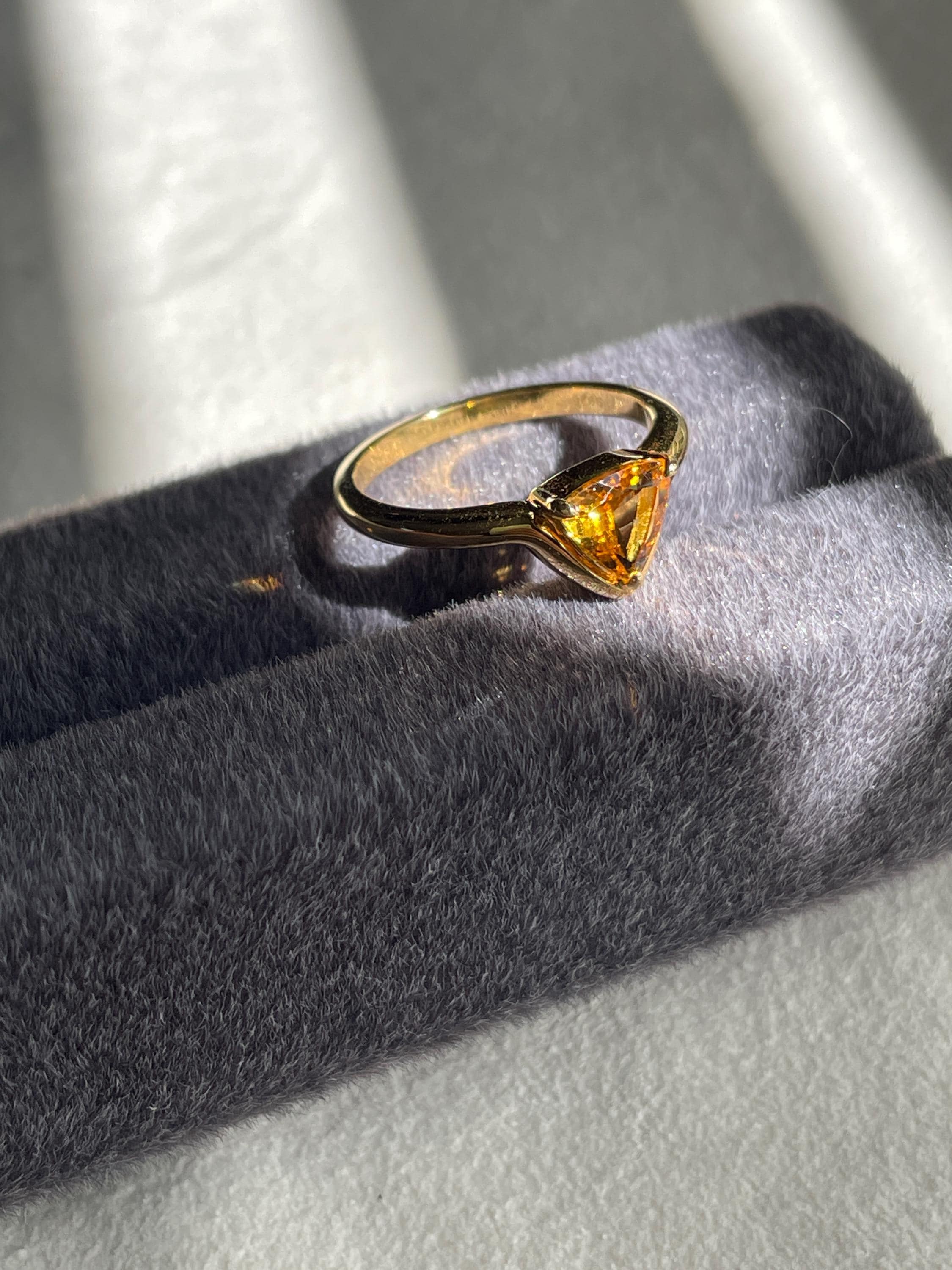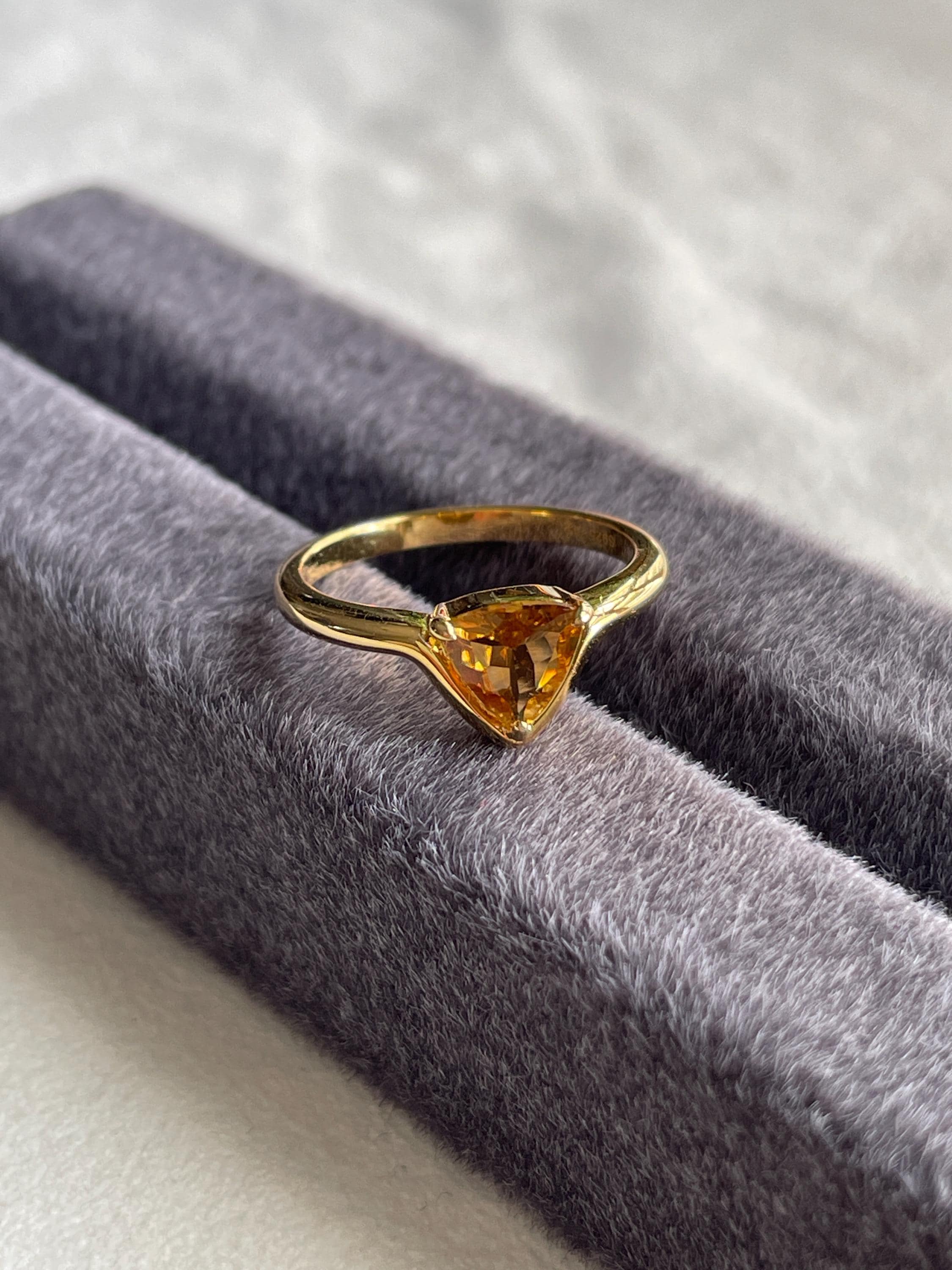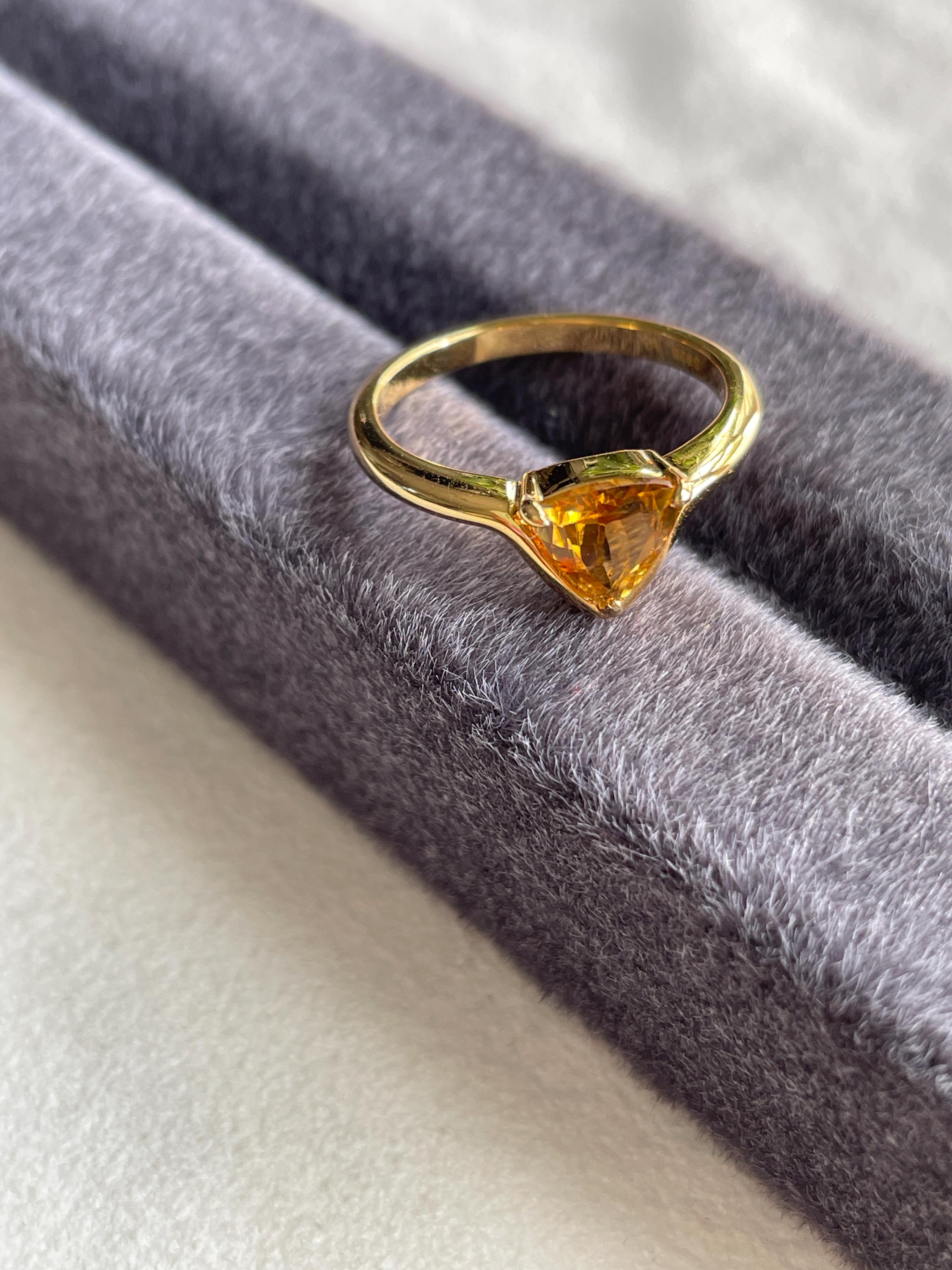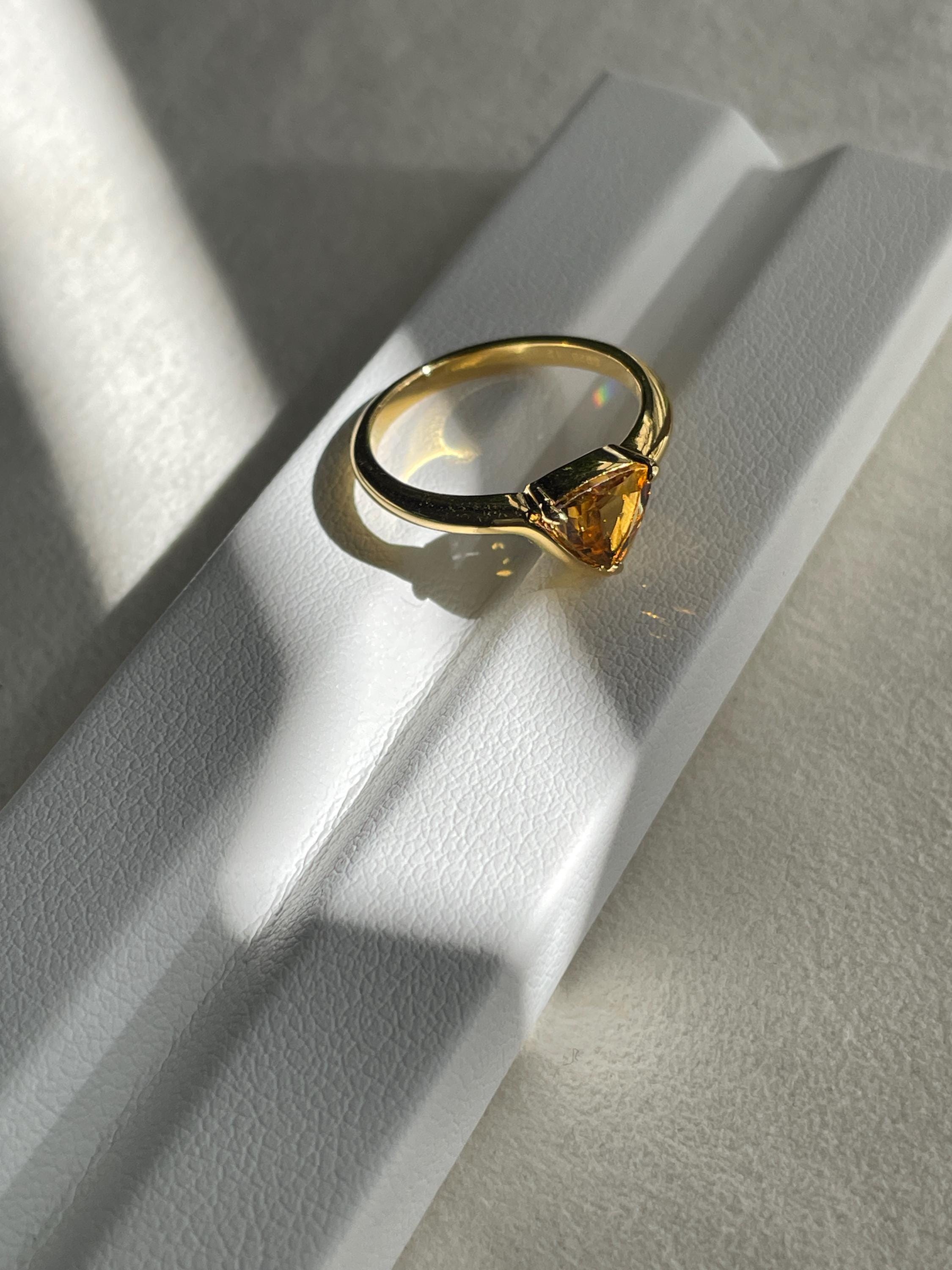Triangle Yellow tourmaline ring in 925 sterling silver with 18k gold plated