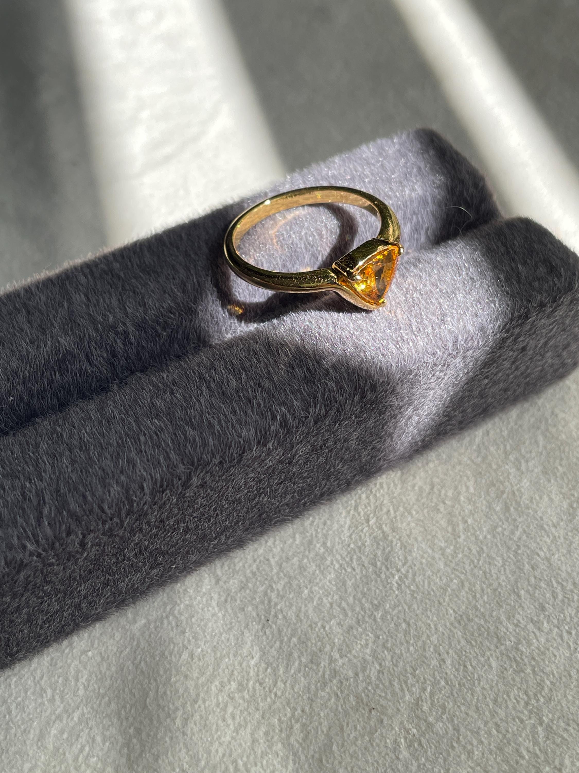 Our Triangle Yellow Tourmaline Ring is crafted in 925 sterling silver and elegantly accented with 18k gold plating. The unique triangle design showcases the vibrant yellow tourmaline, adding a pop of color to any outfit. Perfect for daily wear or special occasions, this ring is a must-have accessory. Treat yourself or gift it to someone special 💛